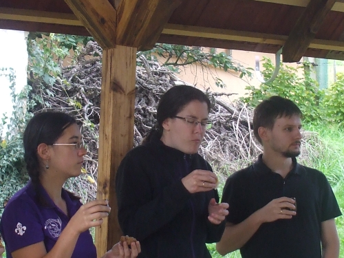 A reggeli ébredés persze kevésbé sikerült dinamikusra, mint előző nap. A később jött autó utasai (Anna, Cili, Julcsi, Áron és Harkály) elindultak hazafelé, mi meg a szakadó esőben misét kerestünk – hihetetlen élmény a tüskeszentpéteri templom közössége, nem is beszélve az új káplánról.