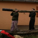 A vasárnap (az udvarnoki misét leszámítva) szintén gyönyörű idővel és a fránya kordonnal telt (itt került sor a Fácános dűlő kidőlt oszlopainak pótlására, ahova végül utánfutóval – cipelje, akinek két anyja van – vittük föl az akácot). Hétfő délelőttre aztán megérkezett a már ígért eső, de ez nem zavart bennünket, hiszen már csak(?) az elpakolás, mosogatás, favágás és más úri huncutságok maradtak hátra.
