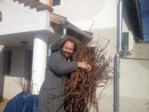 - Ramboval hosszas egyeztetés után végül csütörtökre (febr. 13.) sikerült időpontot egyeztetnem, hogy tőle is elhozzam a fajtagyűjteményhez szükséges Sárfehér oltóvesszőket, ő erről így írt