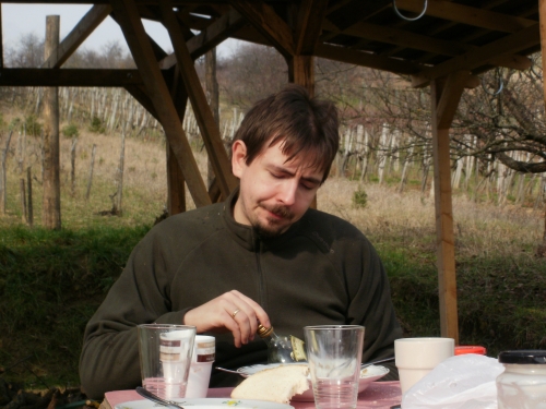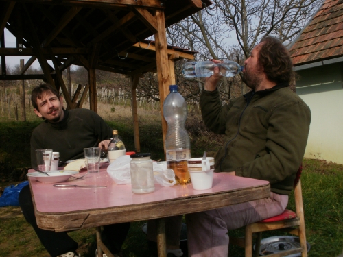 Február utolsó (és március első) hétvégéjére terveztük Petiékkel az új kordon megépítését a Rizling vágó egyik oldalára, meg a Cserszegi táblába. Mivel közben azt az információt kaptam, hogy Jenő bácsinak sikerült vevőt találnia a földjére, két nappal korábban lementünk apuval, hogy alkudjunk a területre. Egészen vicces dolog úgy egyezkedni egy adásvételről, hogy a szükséges pénz nem áll rendelkezésedre, s van ugyan elképzelésed, hogy a megfelelő határidőkig honnan tudod megszerezni, de még semmi sem biztos.